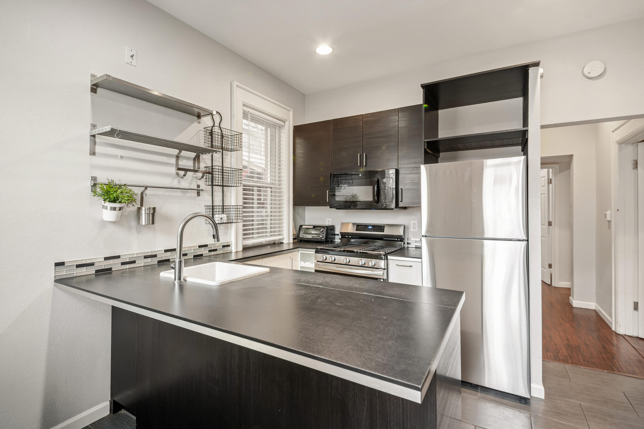 The property also includes three off-street parking spaces and a communal laundry room for tenant use. Recent improvements over the years include all new plumbing throughout the building, a newly constructed basement unit & communal laundry room, new rear decking, new xeriscape landscaping, and newer vinyl windows.